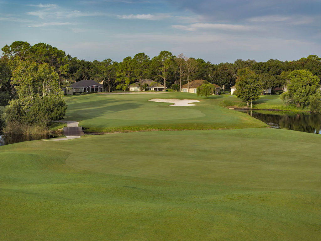 Water protects this reachable par 5. Take one more club if the pin is back. Avoid the short-sided bunker; up-and-down percentages drop quickly.